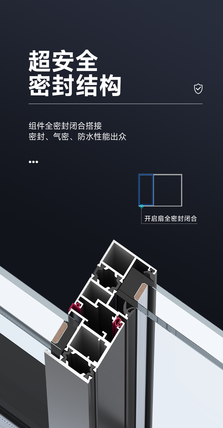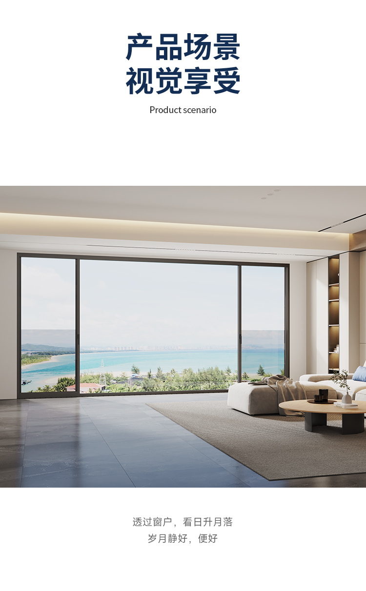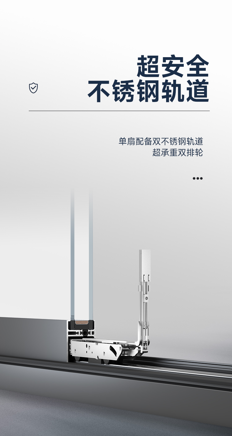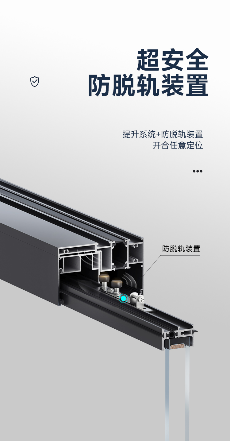 >攬景極享:極窄邊框+全隱門扇,視野無界,臻享闊景; >隨心極至:門窗同源,提升推拉門/提升推拉窗,專屬定制; >結構超安全:提升系統+防脫軌裝置,開合任意定位; >密封超安全:組件全密封閉合搭接;密封,氣密、防水性能出眾; >推拉超安全:單扇配備雙不銹鋼軌道+超承重雙排輪,超穩定、超靜音、超順滑; >阻隔超安全:階梯式排水設計,防風嘯防倒灌,無懼風雨; >家居超安全:防撬鎖點鎖座,多點鎖閉更安心;
