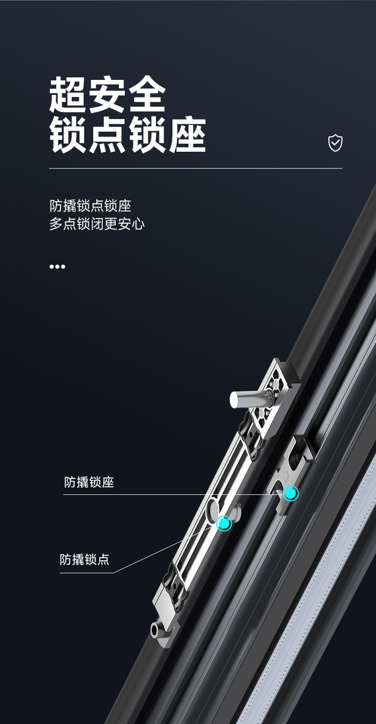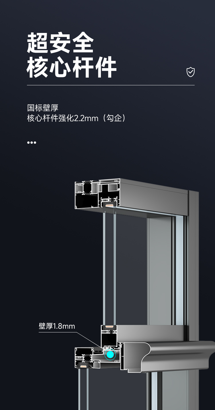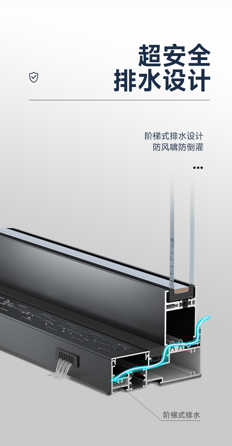 >攬景極享:極窄邊框+全隱門扇,視野無界,臻享闊景; >隨心極至:門窗同源,提升推拉門/提升推拉窗,專屬定制; >結構超安全:提升系統+防脫軌裝置,開合任意定位; >密封超安全:組件全密封閉合搭接;密封,氣密、防水性能出眾; >推拉超安全:單扇配備雙不銹鋼軌道+超承重雙排輪,超穩定、超靜音、超順滑; >阻隔超安全:階梯式排水設計,防風嘯防倒灌,無懼風雨; >家居超安全:防撬鎖點鎖座,多點鎖閉更安心;