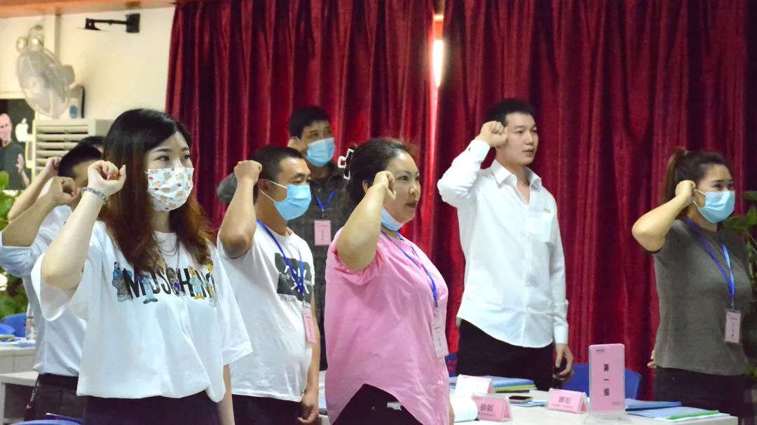 在主持人組織下,學(xué)員們進(jìn)行開班儀式,學(xué)員們分成四組戰(zhàn)隊,分別進(jìn)行團(tuán)隊展示,各隊以精神飽滿的姿態(tài)展現(xiàn)各自風(fēng)采。大家心中都有一個共同目標(biāo):提升自我,更好地服務(wù)于客戶,實現(xiàn)業(yè)績豐收的新局面 。