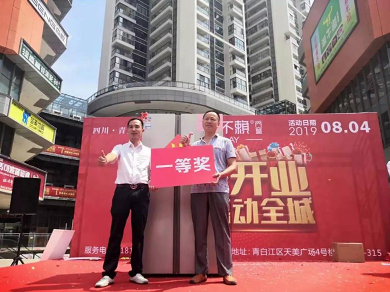 青白江店在開業期間不僅推出了多重產品優惠,更是送出了“冰箱、空調、平開門”等大獎,讓用戶朋友們在以實惠的價格享受品牌的產品和服務同時,更是開心地將大獎捧回家!