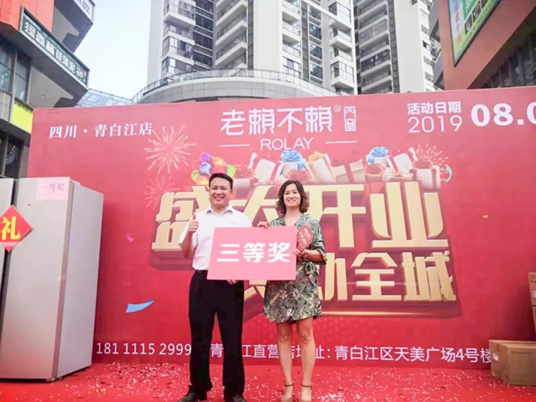 開業慶典首先舉行了隆重的剪彩儀式。賓客、代表先后上臺致辭、發言。青白江店店長剛哥對前來捧場的廣大用戶朋友們、兄弟單位表示衷心的感謝!剛哥表示:青白江店全體員工將不懈努力,全心全意為用戶服務,力爭把老賴不賴打造成為當地消費者“信得過”的品牌門窗店。